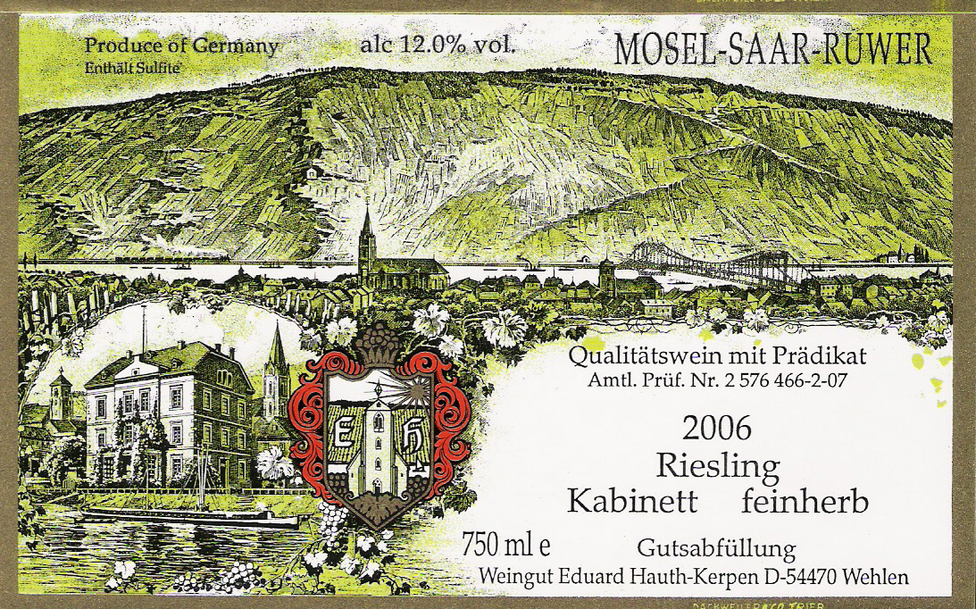 Haupth-Kerpin, Riesling Kabinett Feinherb, Wehlener Sonnenuhr, 2011 $21.75SKU: HK-020List price: $21.75Price: $21.75Weight: 3 lb Quantity * Catalog: Hauth-Kerpen$10-25Germany750mlWhiteRiesling2011