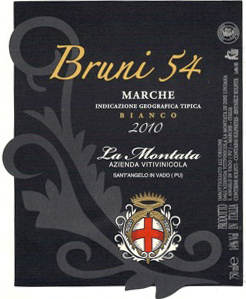 La Montata, Bruni 54, 2010, is a true field cross of Verdicchio and Sauvignon Blanc. The story we were told is that this was an idea of Professor Bruni of Padua University. He wanted a grape that produced a wine with the flavor profile of Verdicchio and the zing of Sauvignon Blanc. So in around 1936 he planted a large field with alternating grape vines of Verdicchio and Sauvignon Blanc. After several years, nature produced a new grape variety, named Bruni 54 at the University. Unfortunately, due to several obvious reasons, nothing was really done to "push" this grape varietal and it floundered for decades.