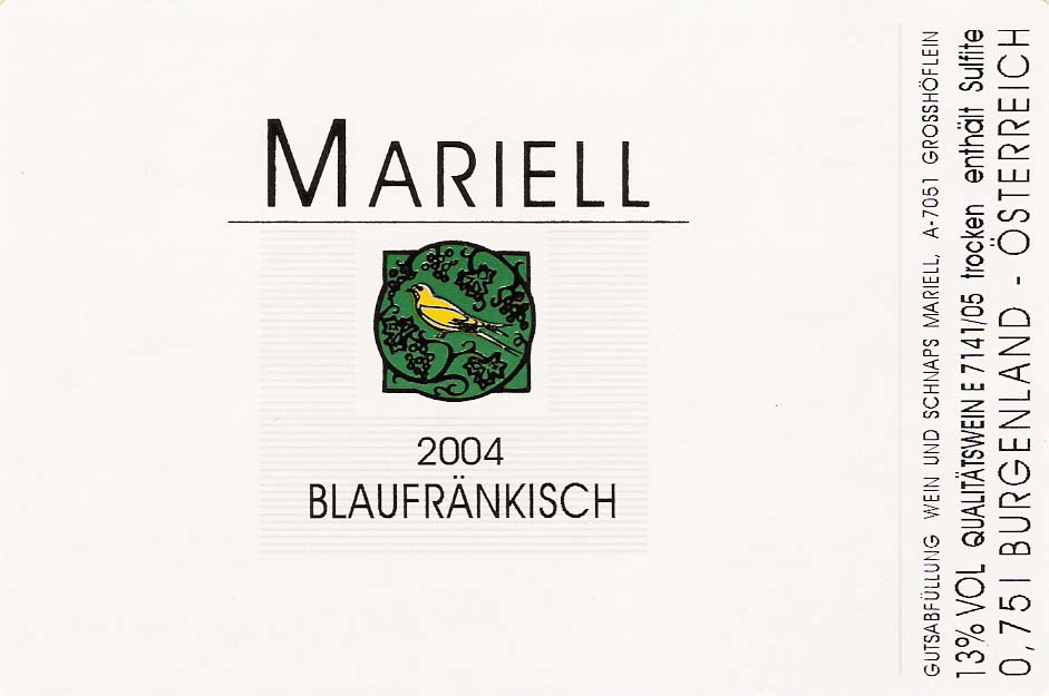 Mariell$10-25Austria750mlRedBlaufrankish2007