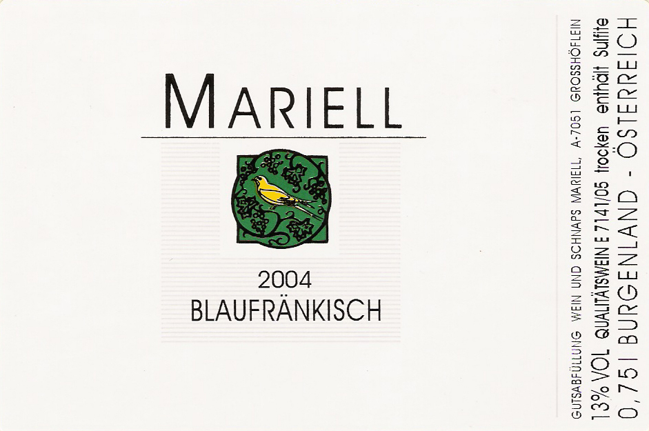 Mariell Blaufrankish 2007 $15.75SKU: MA-017List price: $15.75Price: $15.75Weight: 3 lb Quantity * Catalog: Mariell$10-25Austria750mlRedBlaufrankish2007