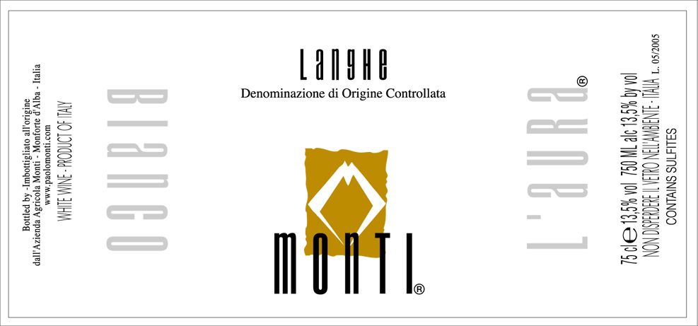 Monti Lange l'Aura 2007 $41.75SKU: MO-006 List price: $41.75Price: $41.75Weight: 3 lb Quantity * Catalog: Monti$26-50Italy750mlWhiteOther Italian2007