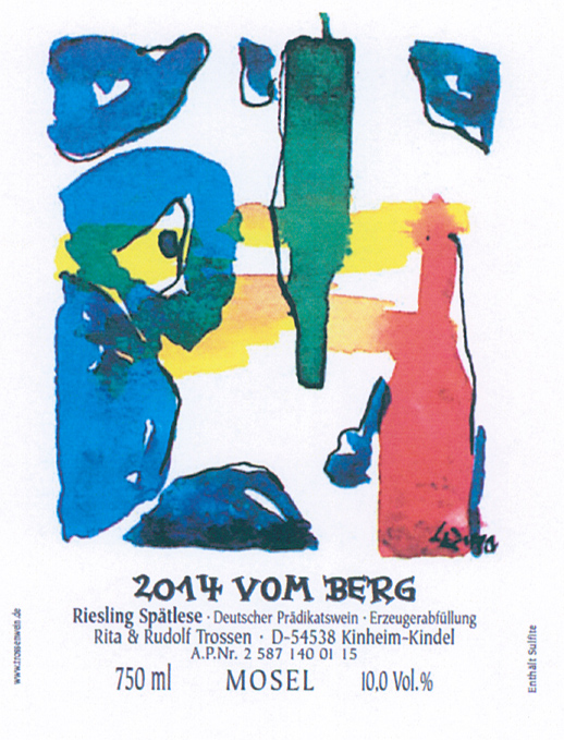 Rudolf Trossen, Reisling Vom Berg Spatlese, 2014 $48.00SKU: TR-005List price: $48.00Price: $48.00Weight: 3 lb Quantity * Catalog: Rudolf Trossen$26-50Germany750mlWhiteRiesling2014