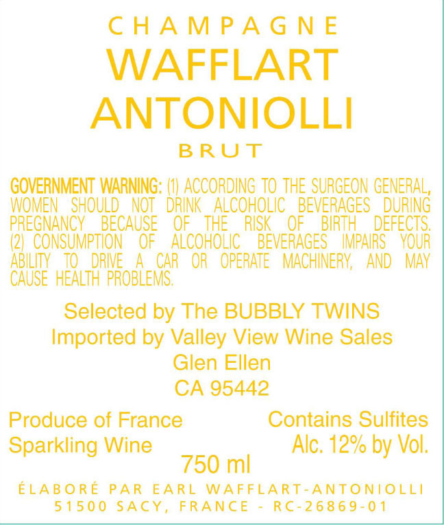 Wafflart-Antoniolli Champagne, Brut Tradition, 1er Cru a Sacy, NV