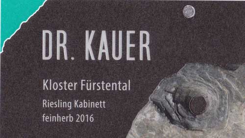 Weingut Dr. Randolf Kauer, Riesling Kabinett, Furstental, feinherb, 2016 $25.00SKU: Rk-022List price: $25.00Price: $25.00Weight: 3 lb Quantity * Catalog: KauerGermany750mlWhiteRiesling2016