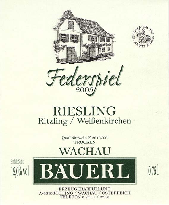 Bäuerl, Ritzling, Federspiel, 2017 $23.00SKU: JB-039List price: $23.00Price: $23.00Weight: 3 lb Quantity * Catalog: Bauerl$10-25Austria750mlWhiteRiesling2017