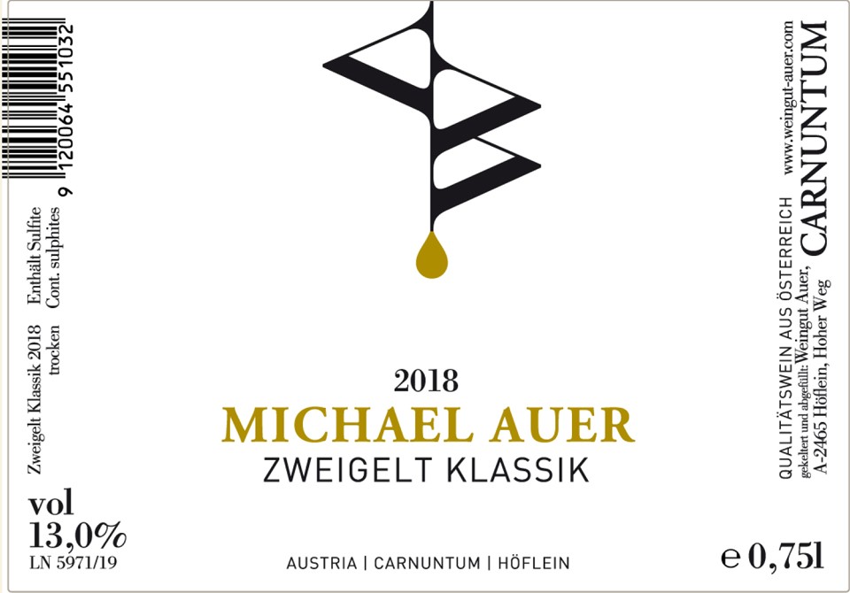 Michael Auer, Zwiegelt Klassic 2018 $18.00SKU: AU-004List price: $18.00Price: $18.00Weight: 3 lb Quantity * Catalog: Auer$10-25Austria750mlRedZweigelt2018