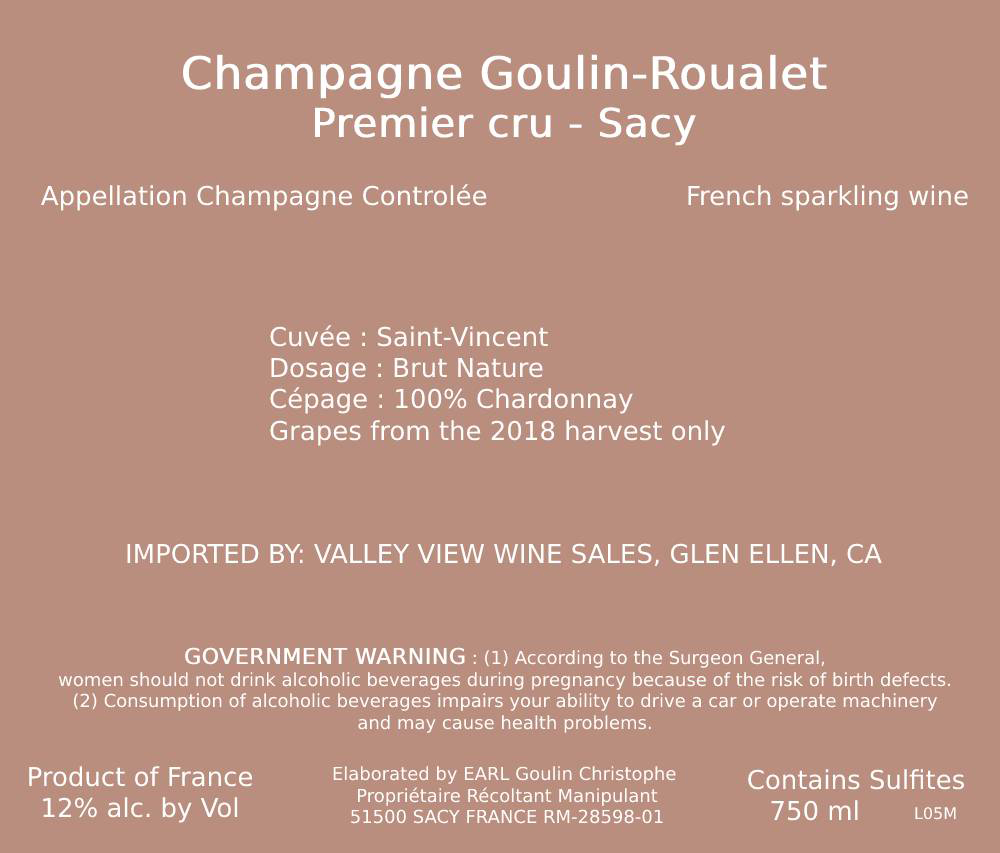 Goulin-Roualet, Champagne St. Vincent, Blanc de Blanc Brut Nature Premier cru 2018