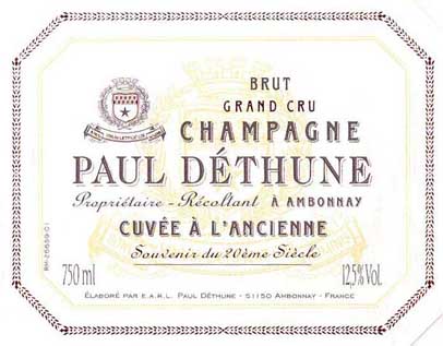 Dethune ChampagneOver $100France750mlUnder Conversion to OrganicWhiteSparklingChampagne2015 Paul Dethune Champagne Cuvee l'Ancienne Grand Cru Millesime 2014
