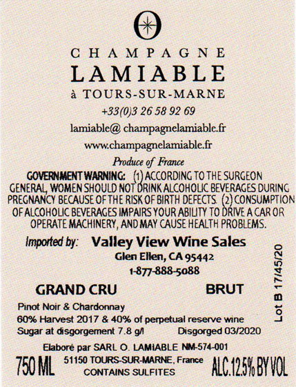 Champagne Lamiable$51-75France750mlUnder Conversion to OrganicWhiteSparklingChampagnenon-vintage Champagne Lamiable, Terre d'etolies Grand Cru Brut NV